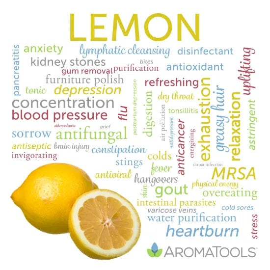 Lemon essential oil has many uses since it has the following properties: anticancer, antidepressant, antiseptic, antifungal, antioxidant, antiviral, astringent, invigorating, refreshing, and tonic.