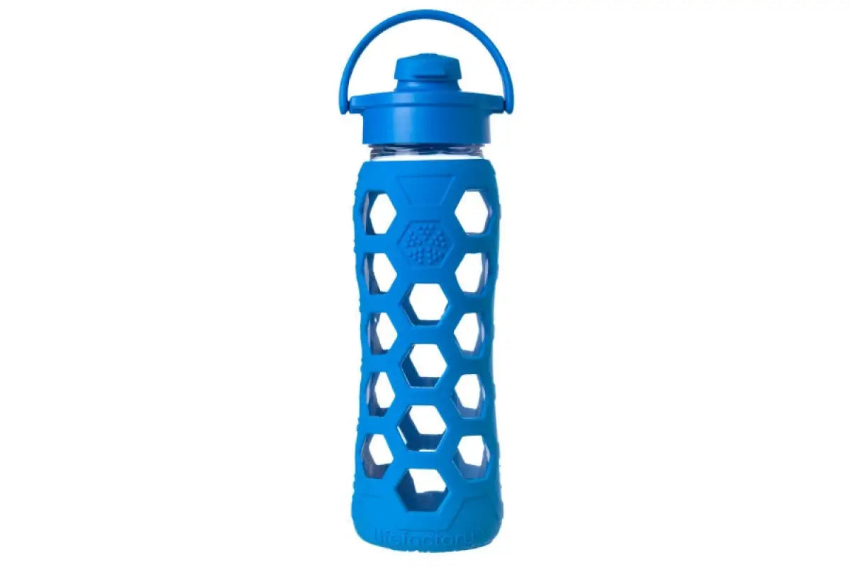 Contents:1 glass water bottle with a colored silicone sleeve.
